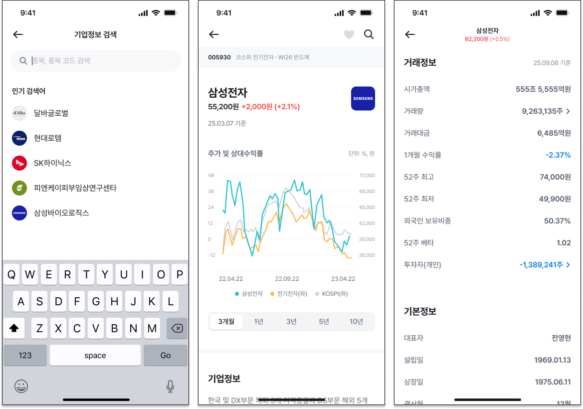 기업정보 화면을 더욱 보기 좋게 다듬었습니다. 복잡한 정보 속에서도 중요한 내용이 한눈에 들어오도록 디자인과 사용성을 개선했습니다.