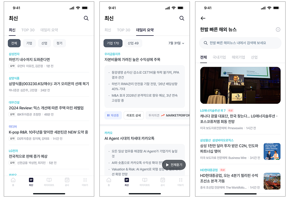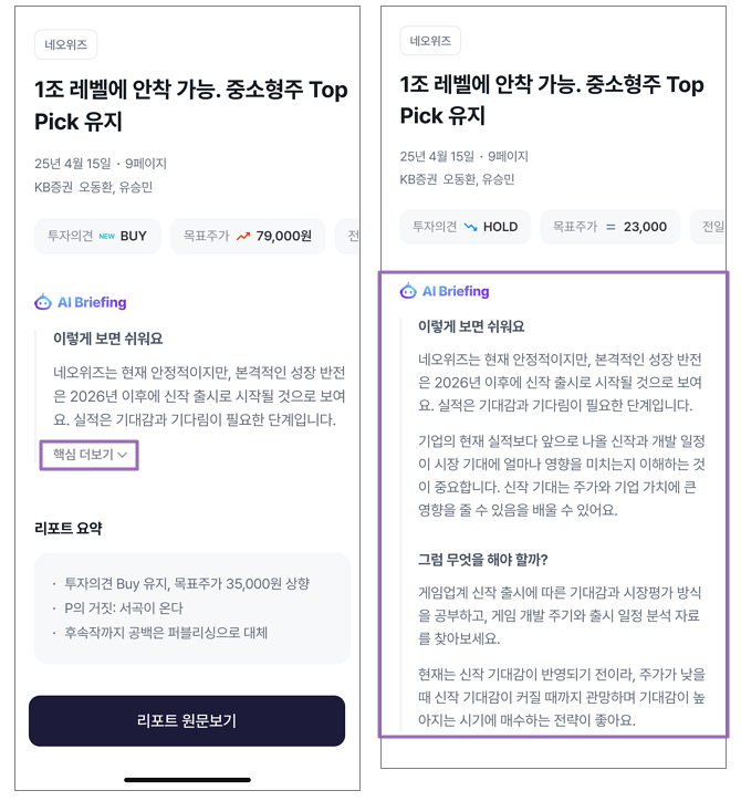 리포트를 쉽게 풀어주는 AI 브리핑 제공